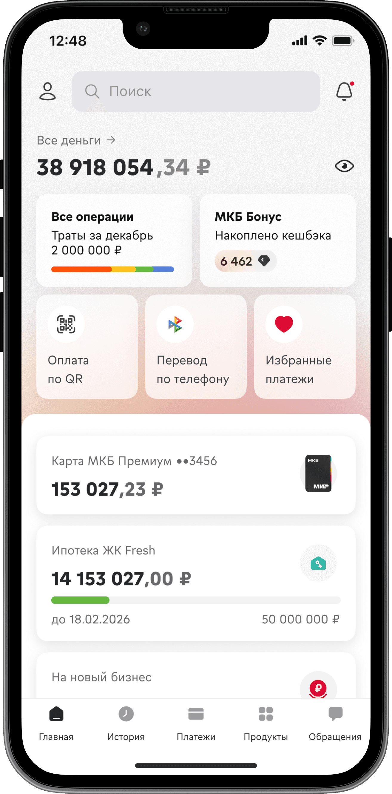 Решение: Пересобрал структуру главного экрана. Вынес часто используемые функции наверх экрана, добавил быстрые действия. Обновил вкладки таббара.